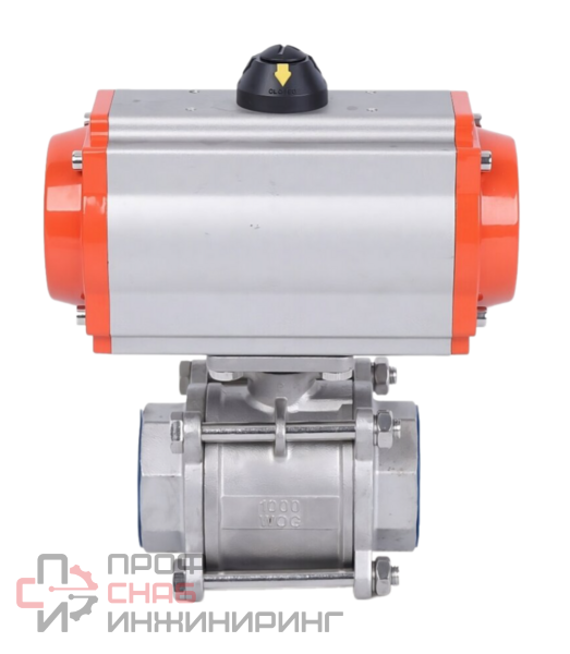 Кран шаровой нержавеющий муфтовый Ду40 трехсоставной с пневмоприводом используется для агрессивных жидкостей, воды, пара, пароводяной смеси, пищевых продуктов, спирта, топлива, газов. Корпус крана состоит из трех частей, стянутых шпильками.