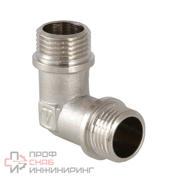 Угловой латунный никелированный фитинг. Резьба – наружная/наружная, цилиндрическая трубная по ГОСТу 6357 (ISO 228, EN 10226).