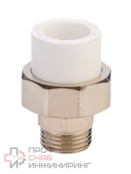 Муфта полипропиленовая разъёмная с наружной резьбой предназначается для соединения полипропиленовых труб (с армированием или без) с металлическими трубами или запорными клапанами в систему трубопровода.