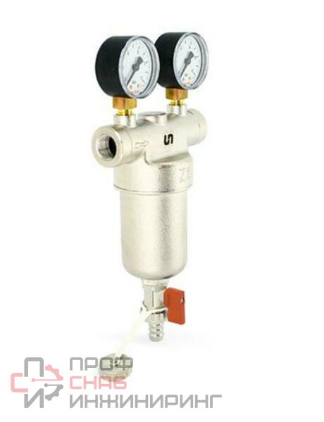 Фильтр промывной предназначен для очистки потока от механических примесей в системах горячего и холодного водоснабжения. Вода, входя в фильтр, опускается в корпус, проходит внутрь фильтрующего элемента и поднимается к выходу, позволяя примесям оседать в нижней части корпуса. Манометры фильтра показывают давление воды на входе и выходе из фильтра. Это позволяет контролировать степень загрязнения фильтрующего элемента: чем сильнее загрязнён фильтрующий элемент – тем на большее значение отклоняется стрелка манометра на выходе в сторону уменьшения давления.