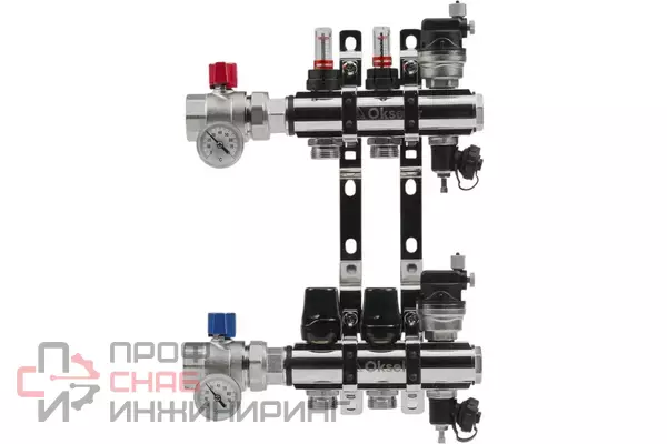 Латунный коллекторный блок OKSELER с расходомерами и автоматическими воздухоотводчикамиПрофессиональное решение для систем водяного отопления и теплых полов. Коллектор из латуни CW617N обеспечивает равномерное распределение теплоносителя по контурам с точным контролем расхода и температуры. В комплекте расходомеры, термометры и автоматические воздухоотводчики