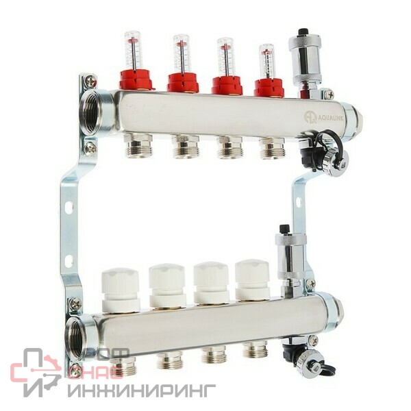Коллекторная группа AQUALINK предназначена для распределения и контроля носителя тепла в системах отопления полов.