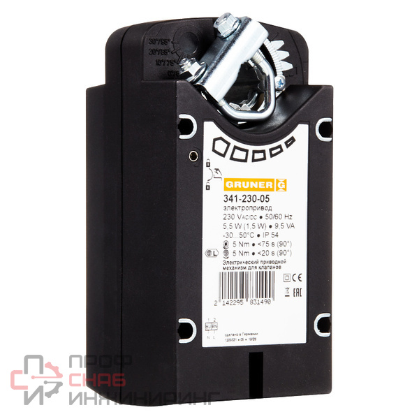 Электропривод Gruner 341C-024D-03/RUS с возвратной пружиной предназначен для управления воздушных и водяных клапанов в системах отопления, вентиляции и кондиционирования воздуха.