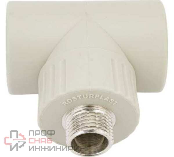 Комбинированный тройник используется для создания резьбового ответвления с наружной резьбой. Тройник изготовлен в соответствии с ГОСТ 32415-2013 и может выдерживать давление до 25 бар. Закладные детали выполнены из высококачественной латуни типа ЛС-59-2 с пониженным содержанием свинца.