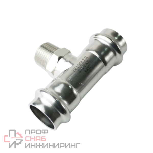 Трехраструбный пресс-тройник из нержавеющей стали обеспечивает соединение трех тонкостенных стальных труб систем водоснабжения, отопления, иных инженерных и технологических установок с рабочей температурой до 95 °С и давлением до 16 бар. Изделие изготовлено из стали AISI 304. Материал уплотнительных колец – эластомер EPDM Sh70. Благодаря бесштуцерной конструкции соединитель обладает малым коэффициентом местного сопротивления – сужение канала практически отсутствует. Фитинг рассчитан на обжатие с помощью пресс-инструмента V-профиля.