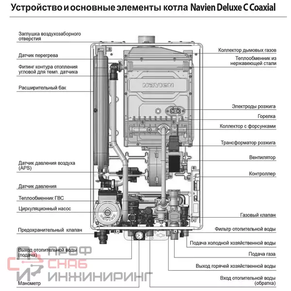 Котел Navien DELUXE C COAXIAL 13 кВт позволит организовать энергоэффективную автономную систему отопления. Это современный агрегат, произведенный в стране Корея. Модели данного типа имеют настенный вариант установки. Этот котел имеет высокий КПД, более 91.2% и имеет коаксиальный тип дымохода. Чтобы подобрать тот вариант, который подойдет для конкретных условий эксплуатации, обратитесь к менеджеру. Главное — правильно определить показатели мощности котельной установки. В среднем теплопотери здания составляют 1 кВт на 10 м2. Для подбора агрегата нужного уровня производительности необходимо ориентироваться на площадь отапливаемого помещения. Таким образом, для здания 130 м2 рекомендуется приобрести котел мощностью не менее 13 кВт.