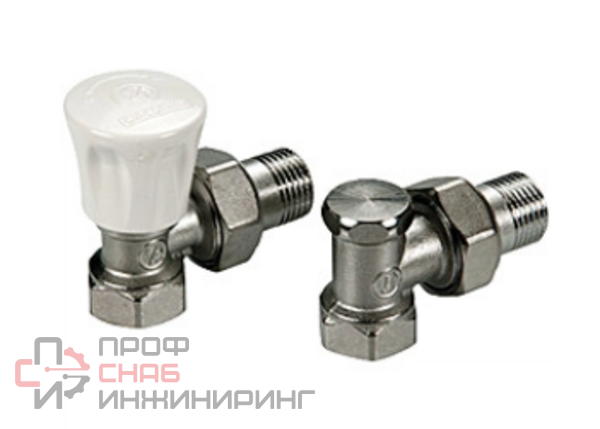 Угловой комплект ручной регулировки Giacomini (Джиакомини) для отопительных приборов, состоящий из углового термостатического клапана и углового отсечного клапана.