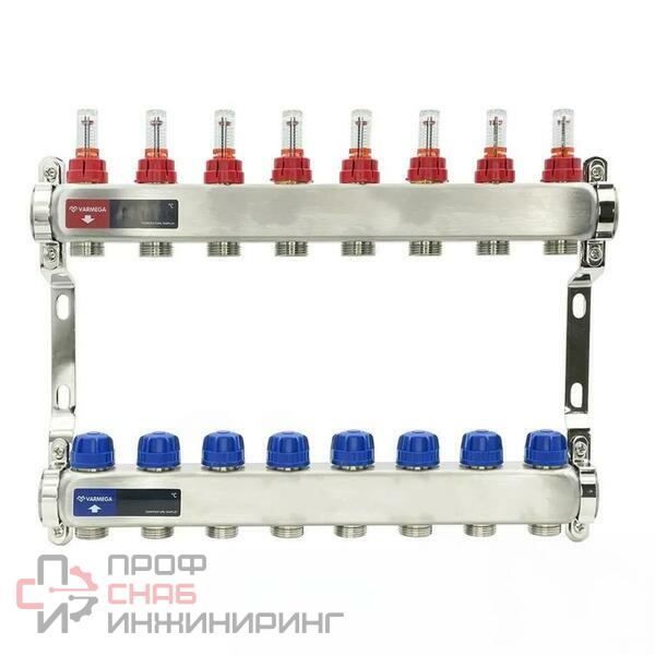 Коллекторные группы предварительной сборки из нержавеющей стали с расходомерами марки Varmega предназначены для распределения и регулирования потоков теплоносителя в низкотемпературных системах отопления (напольное отопление). Оснащены расходомерами на подающем коллекторе и термостатическими вентилями с размером M30x1,5 (с возможностью установки термоэлектрических приводов) на обратном коллекторе. Каждый коллектор подвергается в заводских условиях проверке на функционирование и герметичность уплотнений.