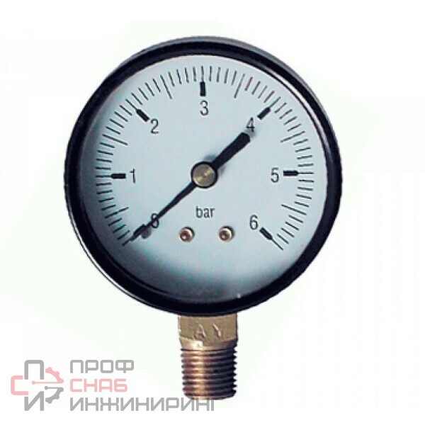 Манометр давления TIM Y-50-6 (до 6 бар) — имеет подключение 1/4" наружная резьба и предназначен для измерения давления воды или газа до 6 бар в системе водо-, газо- снабжения или отопления. Манометр имеет радиальное подключение снизу корпуса.