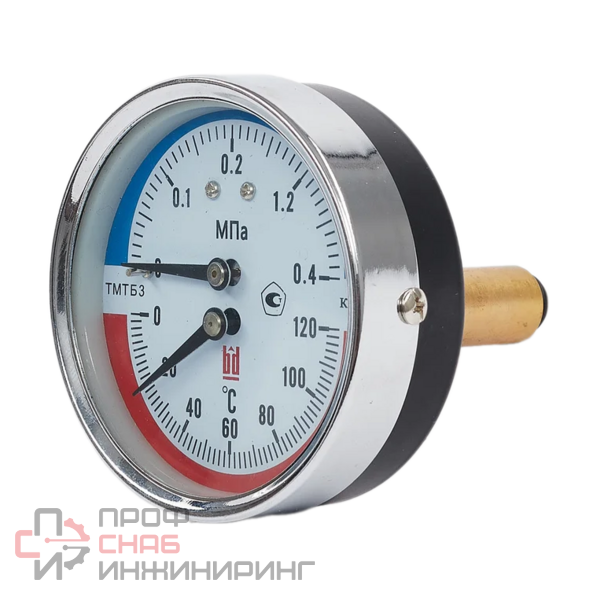 Термоманометр тип ТМТБ комбинированный прибор, для измерения давления и температуры сред, агрессивных по отношению к медным сплавам и не агрессивных по отношению к нержавеющей стали.