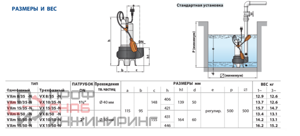 Погружные электронасосы серии VX предназначены для использования в быту, коммунальном хозяйстве и промышленности во всех случаях, когда в перекачиваемой жидкости присутствуют твердые примеси во взвешенном состоянии до Ø 50 мм (например, для грунтовых, поверхностных и сточных вод). Эти насосы применяются для откачивания воды из затапливаемых помещений, таких как подвалы, подземные гаражи, автомойки; откачивания бытовых сточных вод; опорожнения канализационных отстойников; удаления нечистот. Они отличаются надежностью эксплуатации в стационарном варианте установки при обеспечении автоматического режима работы посредством поплавкового выключателя.
