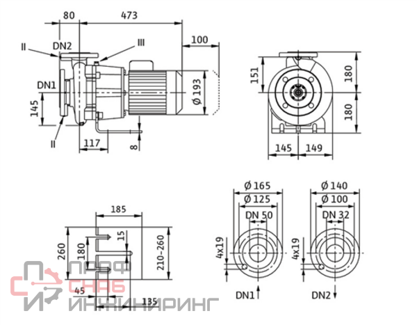 | Присоединение на напорной стороне | Фланцевое DN32 |
