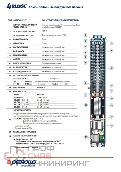 Рекомендуются для подачи чистой воды из скважин, даже при присутствии песка (до 200 г/м³) Благодаря высокой эффективности, надежности и простоте монтажа, насосы рекомендуются для применения в бытовом секторе; в сочетании с гидроаккумуляторами для автоматического водоснабжения; для орошения и т. д.