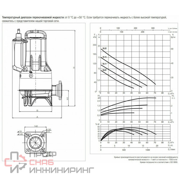 | Максимальная температура перекачиваемой жидкости, °С | 50 |