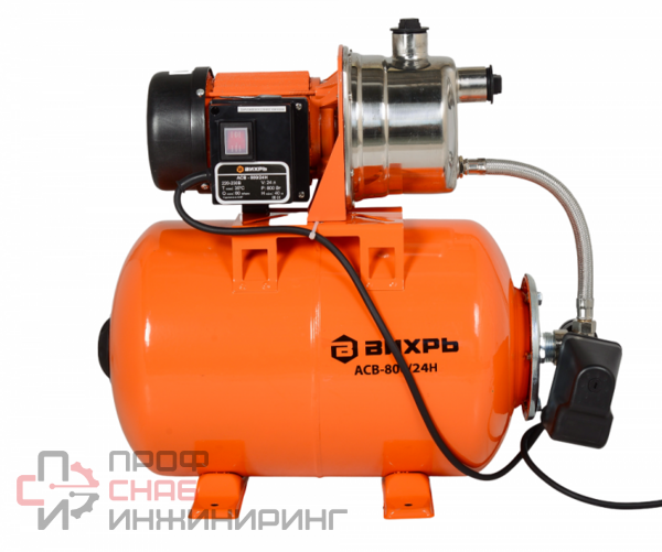 Насосная станция ВИХРЬ АСВ-800/24Н предназначена для бесперебойного водоснабжения в автоматическом режиме, коттеджей, дач, ферм и других потребителей. Данная модель поддерживает необходимое давление в системе водоснабжения, самостоятельно включаясь и отключаясь по мере расходования воды потребителями. АСВ-800/24Н обладает достаточной мощностью 800 Вт, максимальная глубина всасывания 9 метров, максимальная подача воды 60 литров в минуту, максимальный напор 40 метров. Емкость гидроаккумулятора составляет 24 литров, а корпус выполнен из нержавеющей стали.