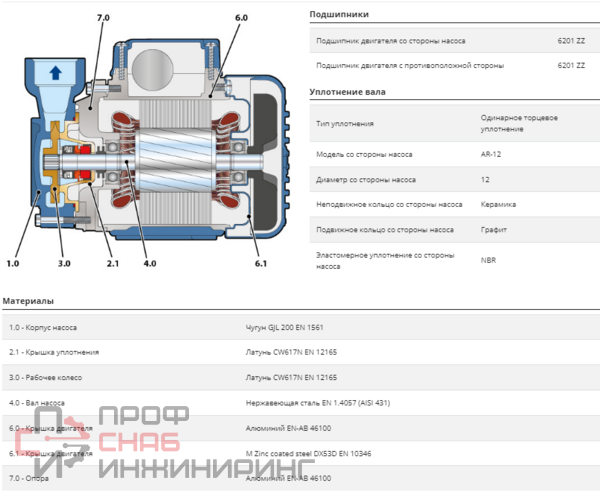 | Рабочее колесо (материал) | Латунь |