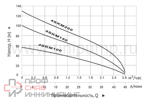 Погружные вихревые насосы UNIPUMP серии 4SKM — предназначены для бытового использования и применяются для подачи чистой воды из скважин диаметром не менее 110 мм, глубоких колодцев, различных резервуаров. Область применения — автономное водоснабжение индивидуальных зданий, коттеджей, дачных домов, полив огородов и садовых участков. Насосы данной серии могут использоваться только для перекачивания чистой воды, без механических примесей и волокнистых включений. Максимальное содержание механических примесей (песок, известь и т.п.) во взвеси — не более 10 г/м³. Более высокая концентрация абразивных примесей в перекачиваемой жидкости создает опасность заклинивания рабочих колес, а также приводит к быстрому износу насосной части. Насосы серии 4SKM не предназначены для перекачивания агрессивных жидкостей, топлива и других химических и взрывоопасных веществ.