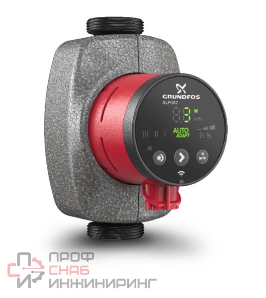 Циркуляционные насосы Grundfos ALPHA2 NEW используются для циркуляции воды или гликольсодержащих жидкостей в регулируемых системах отопления и в системах отопления с переменным расходом. ALPHA2 NEW оснащены 10 режимами управления: 3 режима фиксированной скорости, 3 режима пропорционального давления, 3 режима постоянного давления и наиболее энергоэффективный режим для работы в контуре с радиаторами: режим AUTOADAPT.В режиме управления AUTOADAPT ALPHA2 NEW анализирует нагрузку на систему отопления и оптимизирует свою работу, чтобы соблюсти баланс между максимальным уровнем комфорта и минимальным энергопотреблением. Помимо этого, новые ALPHA2 NEW оснащены функцией балансировки системы отопления. Насос, взаимодействуя с пользователем через мобильное приложение Grundfos GO Balance, анализирует гидравлические характеристики системы отопления и выдаёт рекомендации по настройке запорно-регулирующих клапанов. (необходим модуль связи ALPHA Reader)Насосы серии ALPHA предназначены для обеспечения циркуляции воды в отопительных системах, местных системах горячего водоснабжения (исполнение “N”), а также в системах кондиционирования воздуха и охлаждения. Конструкция насосов ALPHA позволяет перекачивать жидкости в температурном диапазоне от + 2 °C до +110 °C. В ассортименте есть насосы серии ALPHA в исполнении с воздухоотделителем (исполнение “A”).