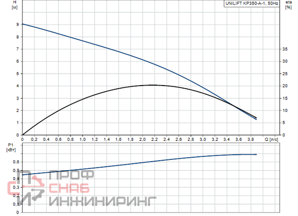 UNILIFT KP350-A-1Погружной дренажный насос.Вертикальный погружной насос с вертикальный напорным патрубком и погружным 1-фазным электродвигателем. Класс изоляции F, защита от перегрева.Насос поставляется с фильтром в основании и рукояткой для переноса, 10 м силовым кабелем и поплавковым выключателем для автоматического вкл./выкл.