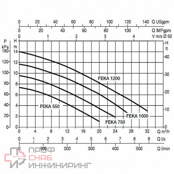 Назначение. Разработано специально для индивидуальных и коллективных систем дренажа и водоотведения, в том числе и фекальных вод. Рабочий диапазон. Производительность: от 0,8 до 32 куб.м/ч, напор: до 14 м. водяного столба. Максимальное рабочее давление: максимальная глубина погружения – 10 м. Перекачиваемая жидкость. Состав: дренажные и сточные воды из септиков и выгребных ям. Температура: для санитарной воды – от 0°С до +35°С, для прочих применений – от 0°С до +50°С. Основные материалы. Гидравлический корпус – из нержавеющей стали (VS) или из технополимера (VX); рабочее колесо – из литой нержавеющей стали (VS) или из технополимера (VX); верхняя крышка, кожух двигателя вал и крепежные элементы – нержавеющая сталь; ручка – нержавеющая сталь с резиновым покрытием. Торцевые уплотнения масляной камеры: со стороны гидравлической части – карбид кремния/карбид кремния, со стороны двигателя – графит/керамика. Особенности. Уплотнение вала – масляная камера с двумя торцевыми уплотнениями. Двигатели однофазных моделей оборудованы встроенным конденсатором и тепловым выключателем. Для трехфазных двигателей необходимо предусмотреть внешнюю защиту от перегрузки. Модели с индексом "М-А" дополнительно оборудованы поплавковым выключателем. Монтаж. Вал двигателя в вертикальном положении. При продолжительной работе насос должен находиться в полностью погруженном положении. Стандартное электропитание: 1x230 В, 3x400 В. Степень защиты: IP 68. Класс изоляции: F.