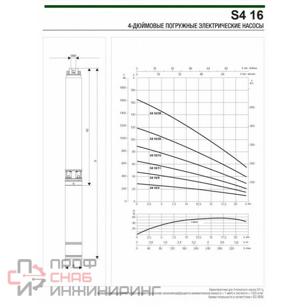 | Диаметр насоса, дюйм | 4 |