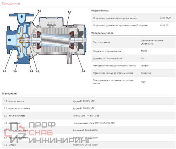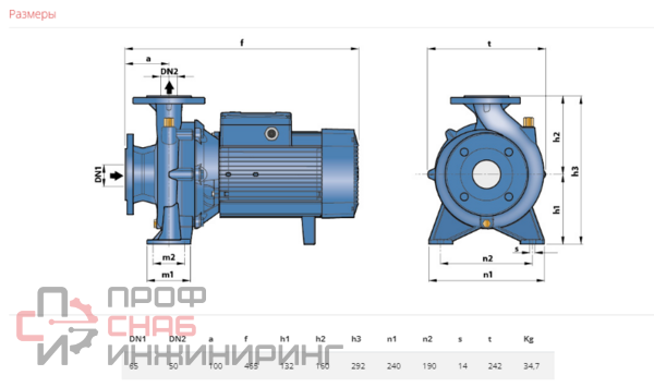 | Присоединение на напорной стороне | Фланцевое DN50 |