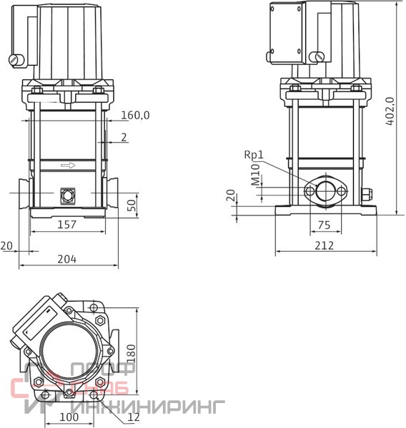 | Присоединение на напорной стороне | Фланцевое DN25 |