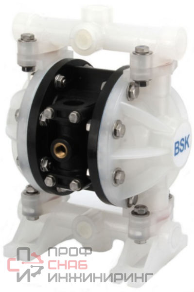 Пневматические мембранные насосы BSK модели BP15PP с диафрагмами из тефлона (PTFE) отлично зарекомендовали себя для перекачки кислот и щелочей. Благодаря своей безотказной работе, конструкции с минимальным количеством изнашивающихся частей, а также низкой стоимости покупки и обслуживания диафрагменные насосы BSK BP15PP-PTT4-B широко применяются в пищевой (станции СИП мойки), типографической (краски, лаки, растворители), химической (кислоты, щёлочи, агрессивные среды) и других отраслях промышленности. Компактные размеры насоса BSK BP15 в сочетании с большой производительностью позволяют устанавливать его в различные машины и агрегаты.
