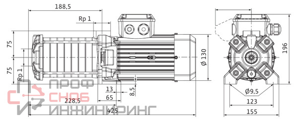 | Присоединение на напорной стороне | Rp 1 |