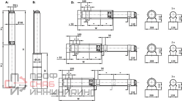 Полностью затапливаемый погружной многоступенчатый насос с радиальными или полуосевыми рабочими колесами в секционном исполнении для вертикального или горизонтального монтажа со встроенным обратным клапаном. Стойкий к коррозии однофазный или трехфазный электродвигатель для прямого пуска с водогликолевой смесью. Герметичная заливка, обмотка с изолирующим лаком, пропитка смолой и самосмазывающиеся подшипники. Электродвигатель охлаждается перекачиваемой жидкостью. Этот агрегат всегда должен эксплуатироваться в погруженном состоянии. Горизонтальный монтаж выполняется с охлаждающим кожухом.