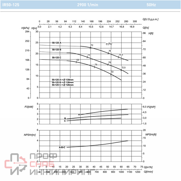 | Присоединение на напорной стороне | Фланцевое DN50 |