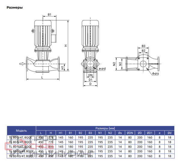 | Присоединение на напорной стороне | Фланцевое DN80 |