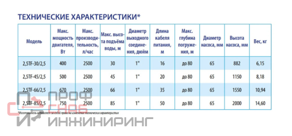 | Диаметр насоса, дюйм | 2.5 |