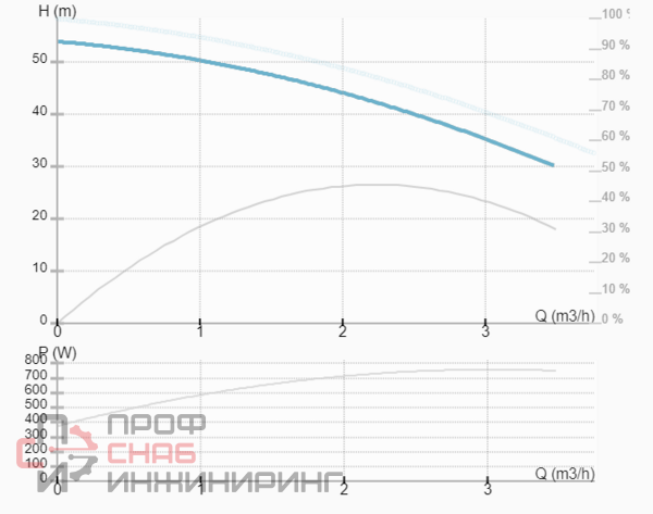| Максимальный напор, м.вод.ст. | 53.5 |
