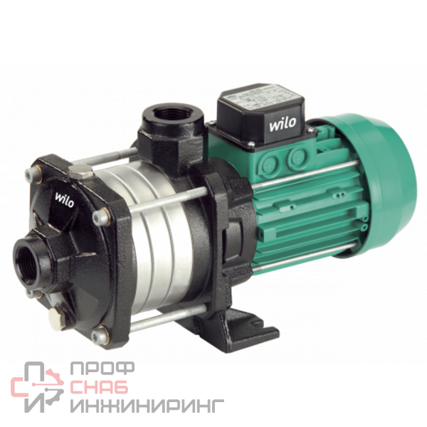 WILO Economy MHIL 304-E-3-400-50-2 - трехфазный нормальновсасывающий многоступенчатый насос. Предназначен для водоснабжения и повышения давления, ирригации, водоподготовки. Присоединения резьбовые, рабочее максимальное давление до 10 бар.