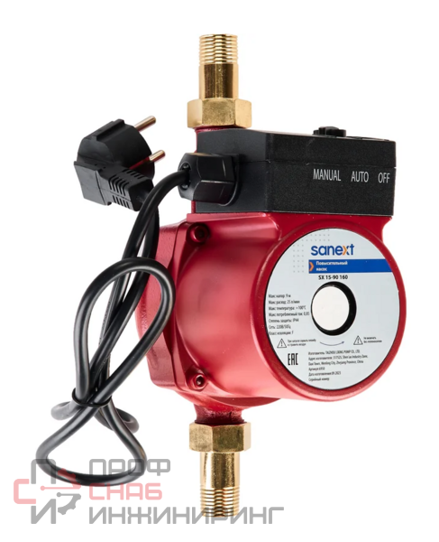 Повысительный насос SANEXT SX 15-90 160 — это одноступенчатый вертикальный центробежный насос с мокрым ротором, предназначенный для повышения давления в системах водоснабжения. Оснащён однофазным электродвигателем (210–240 В), имеет максимальный расход 1,3 м³/ч и напор до 9 м вод. ст., при мощности до 150 Вт и токе 0,44 А. Рабочее давление до 10 бар, температурный диапазон от +2 °C до +100 °C. Корпус изготовлен из чугуна, присоединения G ½ на всасывающей и напорной сторонах, монтажная длина 160 мм, класс защиты IP44, класс изоляции F. Частотного преобразователя не предусмотрено.