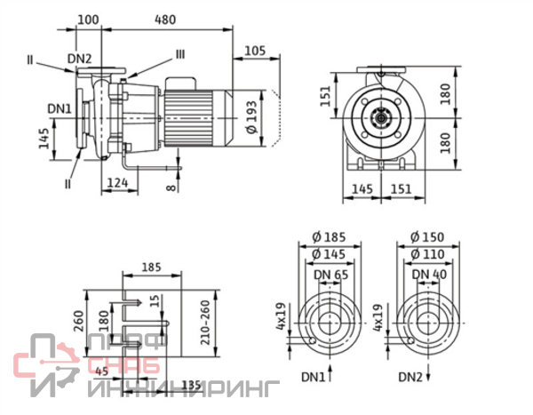 | Присоединение на напорной стороне | Фланцевое DN40 |