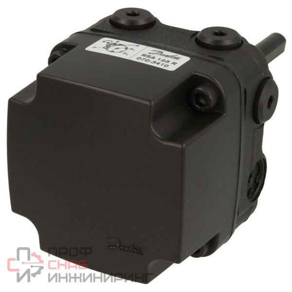 Универсальный насос для горелки Danfoss RSH 63 070L6310 служит для эффективного и безопасного перекачивания дизтоплива, бензина, керосина при работе малых и средних горелок с расходом до 138 л/час. Давление топлива регулируется в диапазоне от 15 до 35 бар. Заводская настройка 21 ±1 бар. Насос подходит для однотрубных и двухтрубных систем. Допустимая температура топлива в насосе: от -10 до +120 ºC. Топливный насос оснащен регулятором с запорной функцией. Предусмотрен электромагнитный клапан, специальная пружина, сетчатый фильтр открытой областью 75 см² со степенью очистки 150 мкм.