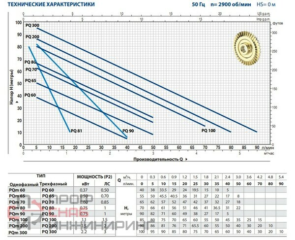 | Максимальный напор, м.вод.ст. | 90 |