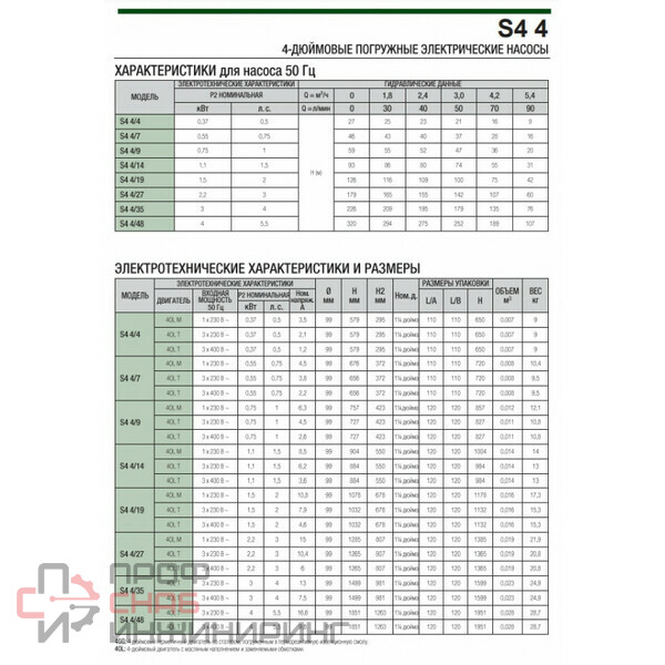 | Диаметр насоса, дюйм | 4 |