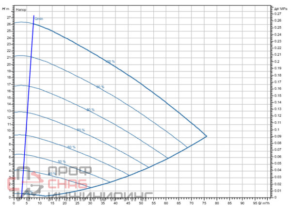 | Максимальный напор, м.вод.ст. | 26.1 |