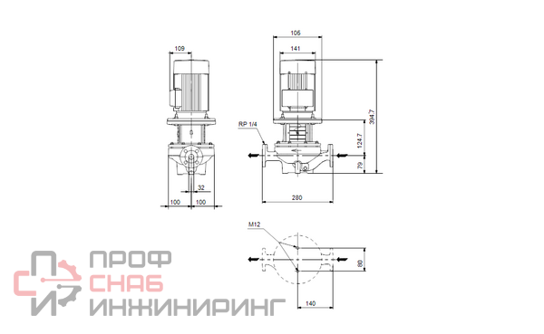 Одноступенчатый, без соединительной муфты, центробежный с всасывающим и выпускным патрубками на одной линии. Насос имеет конструкцию извлечения сверху, т.е. головную часть (электродвигатель, голову насоса и рабочее колесо) можно демонтировать для обслуживания или ремонта в то время, как корпус насоса остается на трубопроводе. Насос оснащен несбалансированным сильфонным уплотнением. Уплотнения вала соответствуют EN 12756. Подсоединение к трубопроводу с помощью фланцев PN 6/10 DIN (EN 1092-2 и ISO 7005-2). Насос оснащен вентилятором охлаждения асинхронного двигателя.