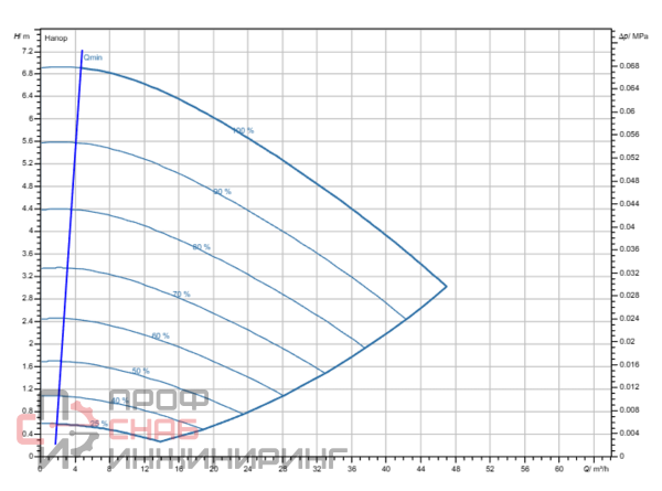 | Максимальный напор, м.вод.ст. | 6.9 |