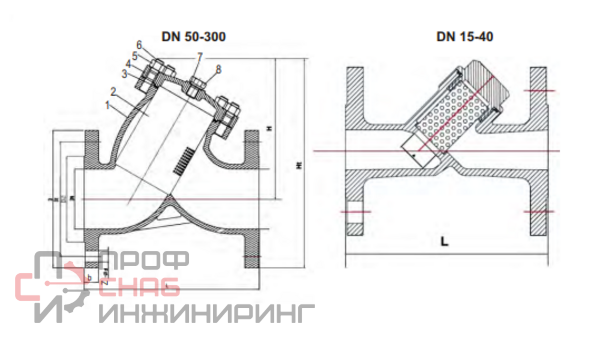 Корпус - SS316. Сетка - нержавеющая сталь. Присоединительные отверстия фланцев по ГОСТ в РN 16 и PN 10 для DN15-150 совпадают. ГОСТ-а на строительные длины на фильтры не существует. Рабочие среды и применения: - для пара, паровых систем (паровых линий, паропроводов) до 250°C, для конденсатных линий, для аммиака, для газопроводов нейтральных и инертных газов, включая природный (натуральный) газ, для систем водоподготовки и водозабора, для воды, в том числе технической, питьевой, сетевой, подпиточной, диситиллированной и т.д., для многих солевых водных растворов, для транспортировки минеральных и синтетических масел, для работы при температуре до -60°С, для многих других применений в соответствии с конструкцией и материалами фильтра.