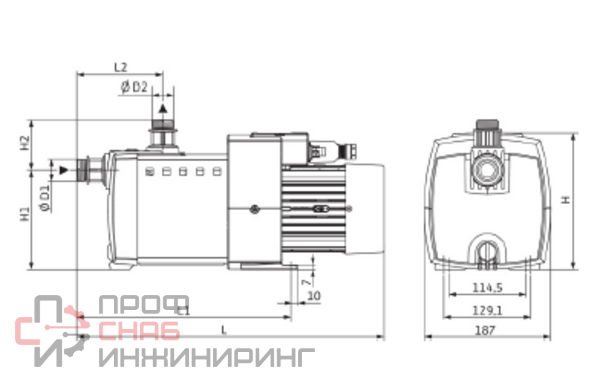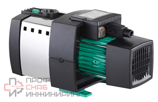 Многоступенчатый горизонтальный центробежный насос с сухим ротором, самовсасывающий, с непосредственно прифланцованным электродвигателем. Не требующее техобслуживания скользящее торцовое уплотнение в месте прохода вала.Для перекачивания и повышения давления питьевой или слабо загрязненной воды в жилых зданиях и сельскохозяйственных предприятиях, а также в других сферах.Водоснабжение из колодцев, цистерн для ирригации, полива, повышения давления и т. д.Двухполюсный однофазный электродвигатель с кабельным вводом, конденсатор в соединительной коробке, защитный выключатель электродвигателя с автоматическим повторным включением.