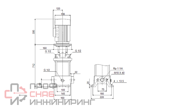 Вертикальный многоступенчатый центробежный насос с всасывающим и напорным патрубками, расположенными на одном уровне ("ин-лайн"), что обеспечивает возможность установки в горизонтальной однотрубной системе. Головная часть и основание насоса из чугуна - все остальные контактирующие с перекачиваемой жидкостью детали из нержавеющей стали. Картриджное уплотнение вала обеспечивает высокую надежность, безопасное использование и легкий доступ для обслуживания. Вращение передается через разъемную муфту. Насос оснащен асинхронным 3-фазным электродвигателем на лапах, с воздушным охлаждением.