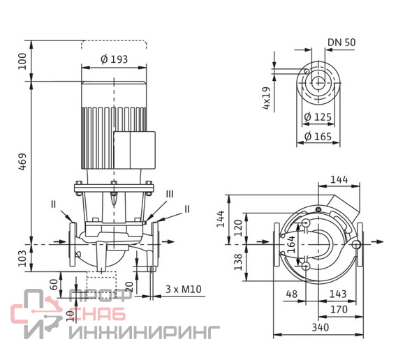 Одноступенчатый центробежный насос с сухим ротором линейного типа, предназначенный для установки в трубах или на фундаменте. Блочная конструкция с низким уровнем шума и вибрации, с фонарем и неподвижно присоединенным стандартным электродвигателем с фланцевым креплением (стандартный электродвигатель). С не зависящим от направления вращения скользящим торцевым уплотнением в кожухе с принудительным охлаждением и снижающим кавитацию рабочим колесом. Фланцы имеют штуцеры R 1/8 для измерения давления.