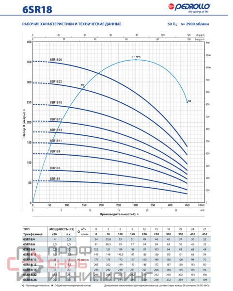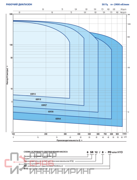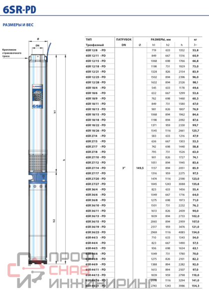 | Диаметр насоса, дюйм | 6 |