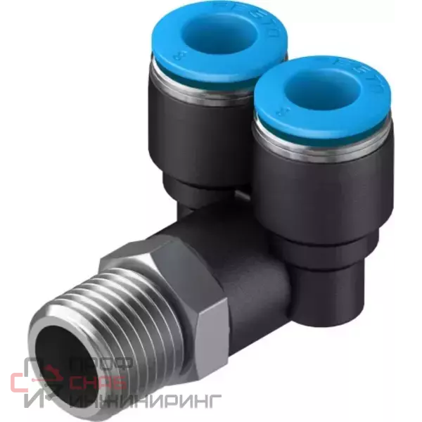 Разветвитель угловой поворотный с наружным шестигранником — Y-образный поворотный штуцер с наружной резьбой и внешним шестигранником. Подходит для использования со шлангами со стандартным наружным диаметром. Входит в состав стандартной серии фитингов Festo Quick Star (QS).