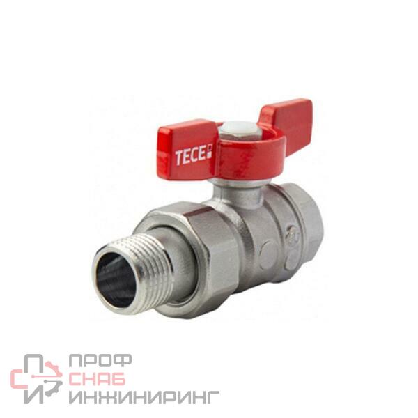 Шаровой кран, хромированный, с рукояткой-бабочкой, соединение с внутренней/наружной резьбой, с отводом с накидной гайкой.